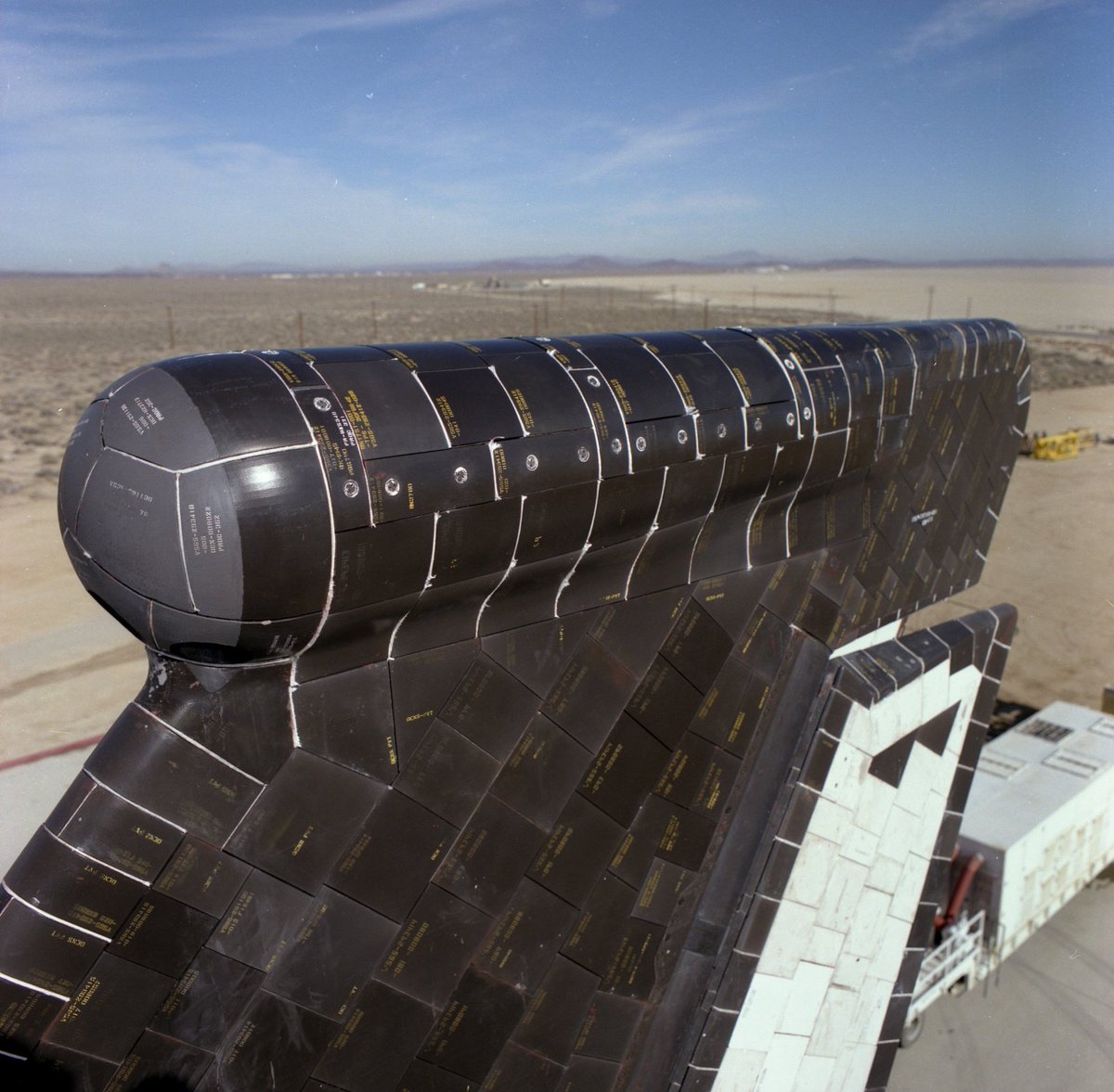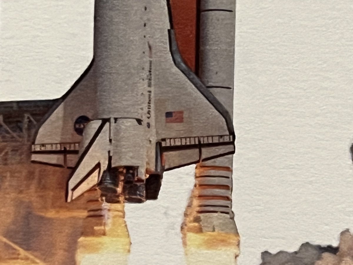 Вообще все Шаттлы немного отличались, но по косвенным признакам я был уверен, что это Atlantis, причём из эпохи пост 90х, тк на крыле вернули лого с синим шаром. Но какой из 27 полётов тогда?