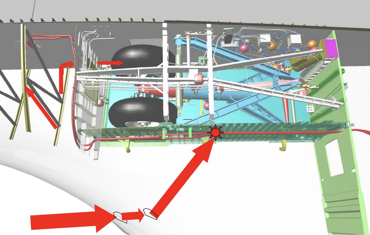Ещё через минуту Центр Управления замечает отсутствие данных с 4 датчиков внутри системы гидравлики крыла. Потеря старых датчиков — далеко не самое шокирующее событие для 20ти летнего челнока, так что спуск продолжается в штатном режиме. Горячие газы уже внутри крыла.