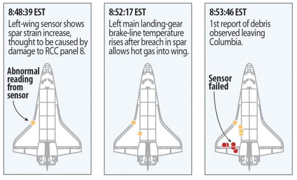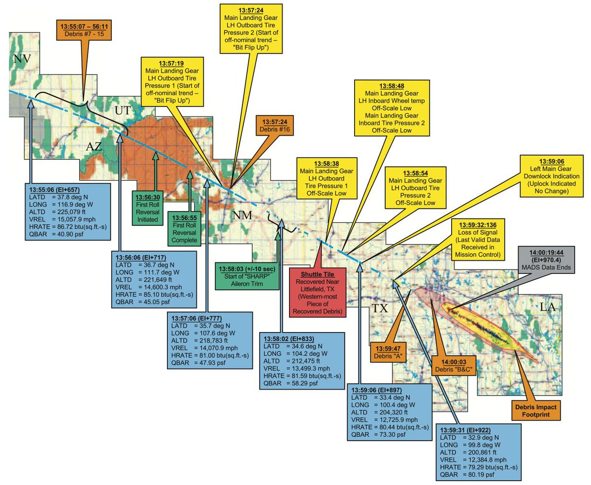 В предыдущих твитах я специально не вдавался в детали и точную хронологию событий, ведь все они появились только через 7 месяцев после расследования комиссии Columbia Accident Investigation Board (CAIB). Удалось установить причины, нарушения и точный ход катастрофы.