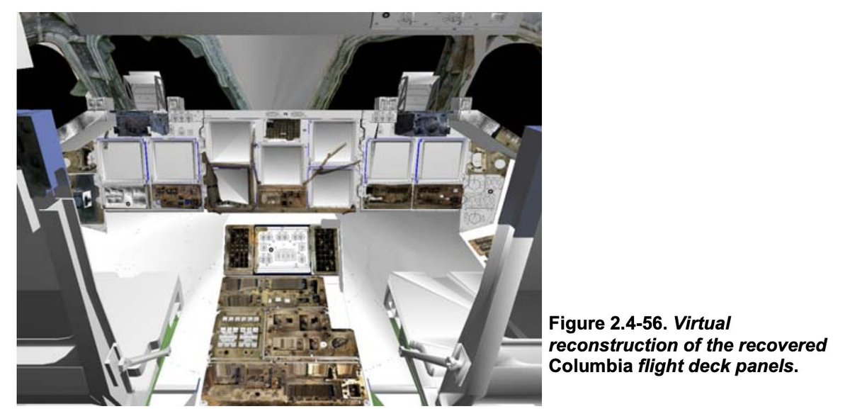 И поскольку Колумбия была первой, она отличалась от других Шаттлов. Вообще все челноки были уникальными, но Колумбия была первой, и поэтому для анализа данных, на ней было установлено множество дополнительных сенсоров, которые позже помогут более точно восстановить ход аварии.