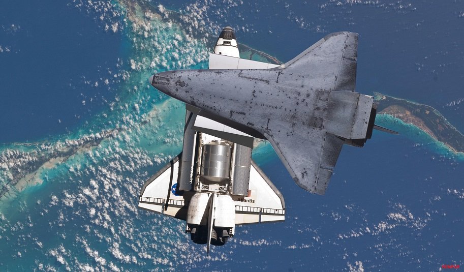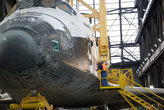 По замыленной надписи, плитке на носу, крыльях и хвосте сразу определил, что это Shuttle Atlantis, всего у нег было 27 полётов
