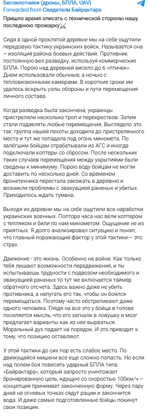 4/ "Then they began to suppress any movement. It looked like this: our infantry unit reached the targeted area and immediately came under mortar fire - sometimes Ukrainians also included copters that dropped grenades in such attacks."