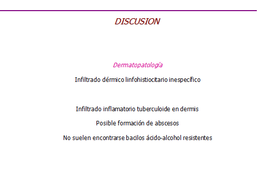 Placa ulcerada o psoriasiforme o lesión verrucosa