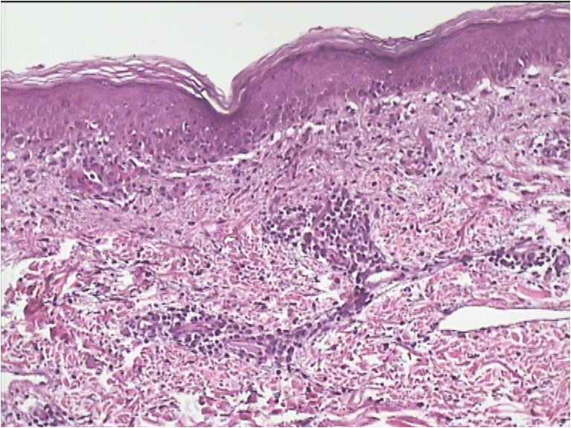 Infiltrados liquenoides. Posible erosión epidérmica