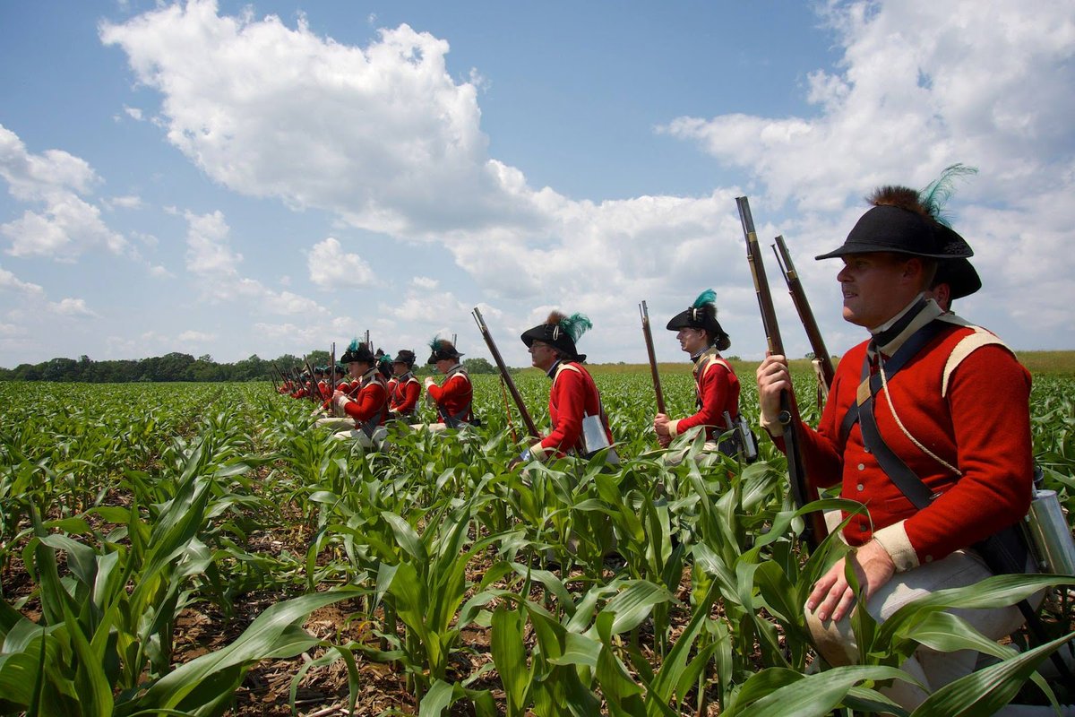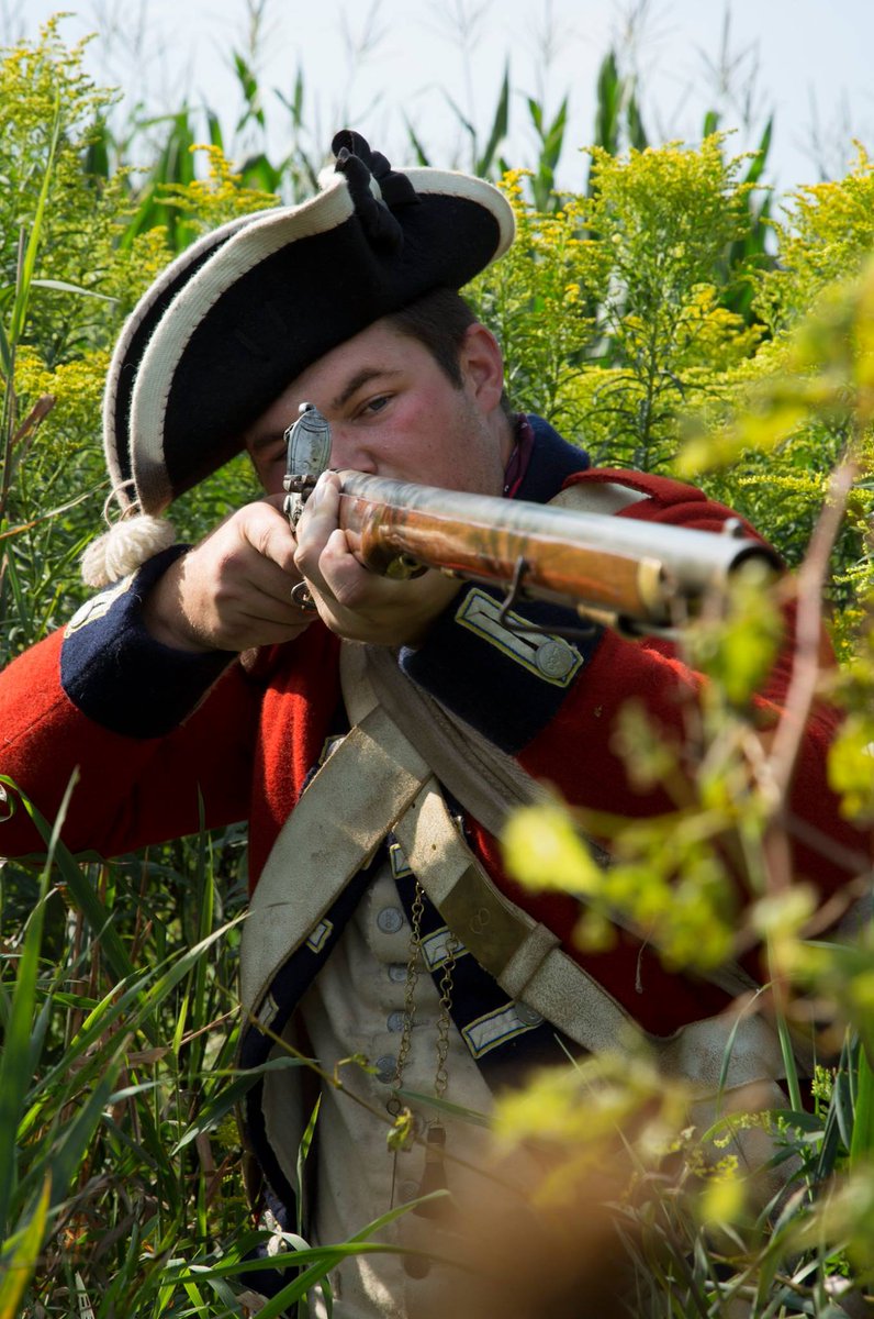 It is said that the bright red uniforms of the British infantry made them easy targets, to be individually picked out by American riflemen. Although this may true in very specific cases, by and large, the American War of Independence was not fought by drab colored riflemen. 3/15