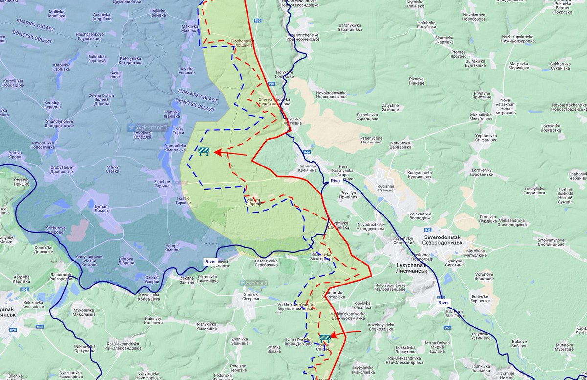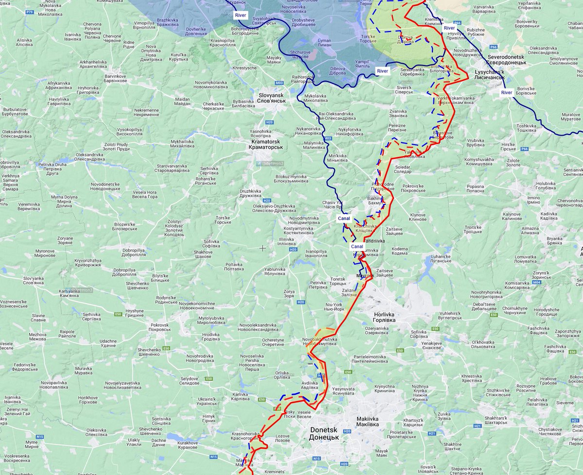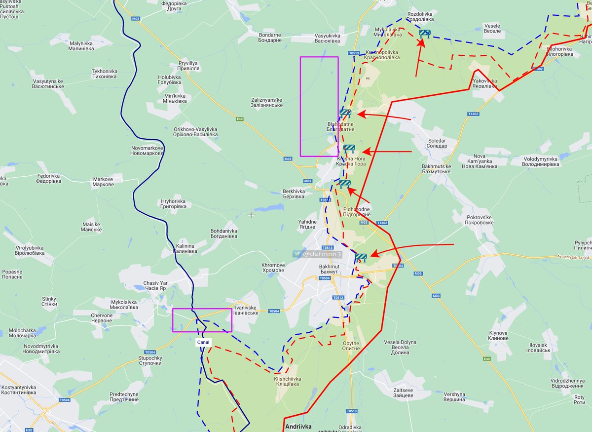 RuAF are still making incremental gains. I'm looking for if RuAF manages to establish positions on the high ground west of the road, north of Bakhmut and if they manage to establish control over the Road between Ivanivske and Chasiv Yar.