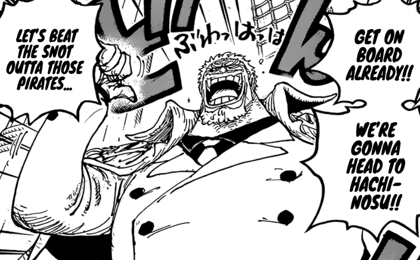 Greenbull has defeated Weevil, Law is fighting Blackbeard, Garp is going to Hachinosu. Kizaru & Saturn are coming to Egghead.