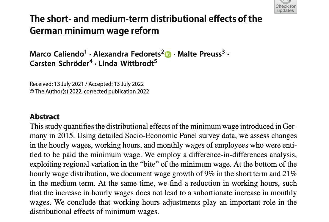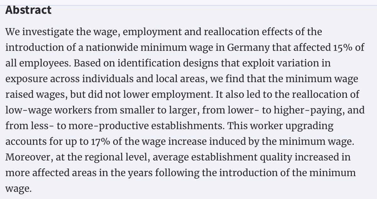 Dustmann et al (2021) analizan aumento SMI en Alemania (2010-2016).
