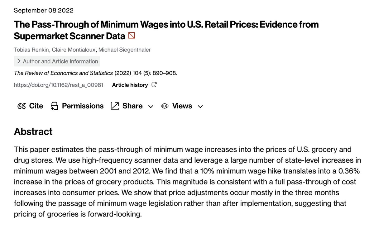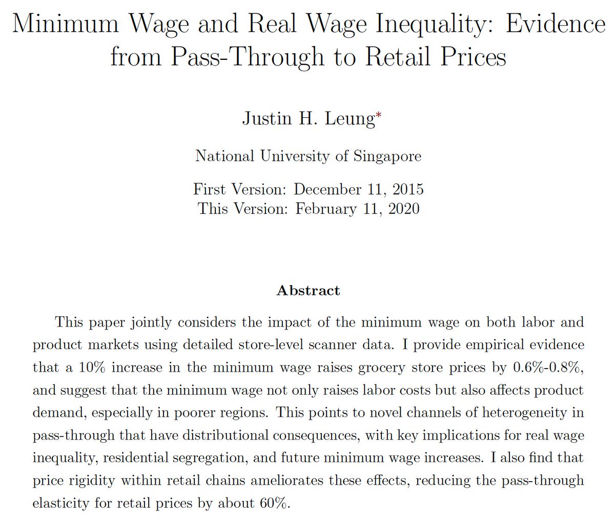 Un análisis de los aumentos del Salario Mínimo en EEUU (2001-2012) estima que si este aumenta un 10%, los precios en supermercados y farmacias se encarecen un 0,36%.