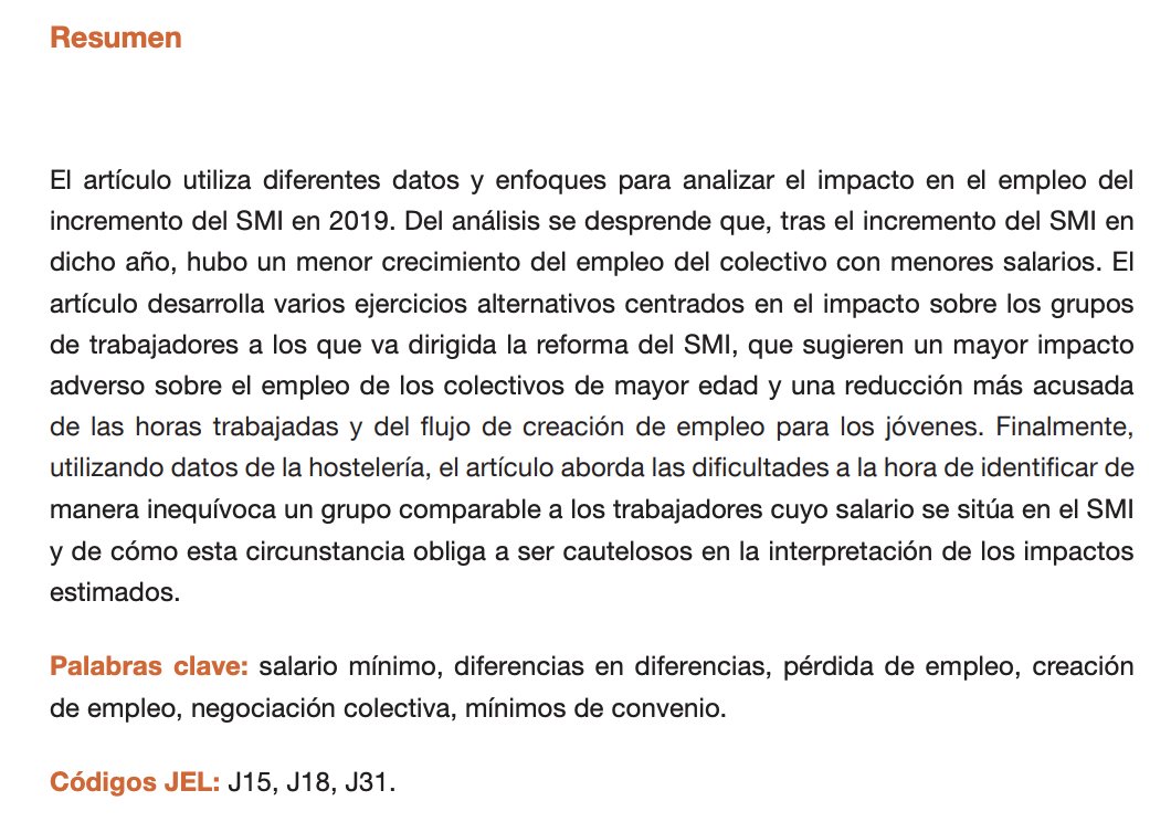 Barceló et al (2021) analizan efectos subida 22% SMI en 2019 en España.