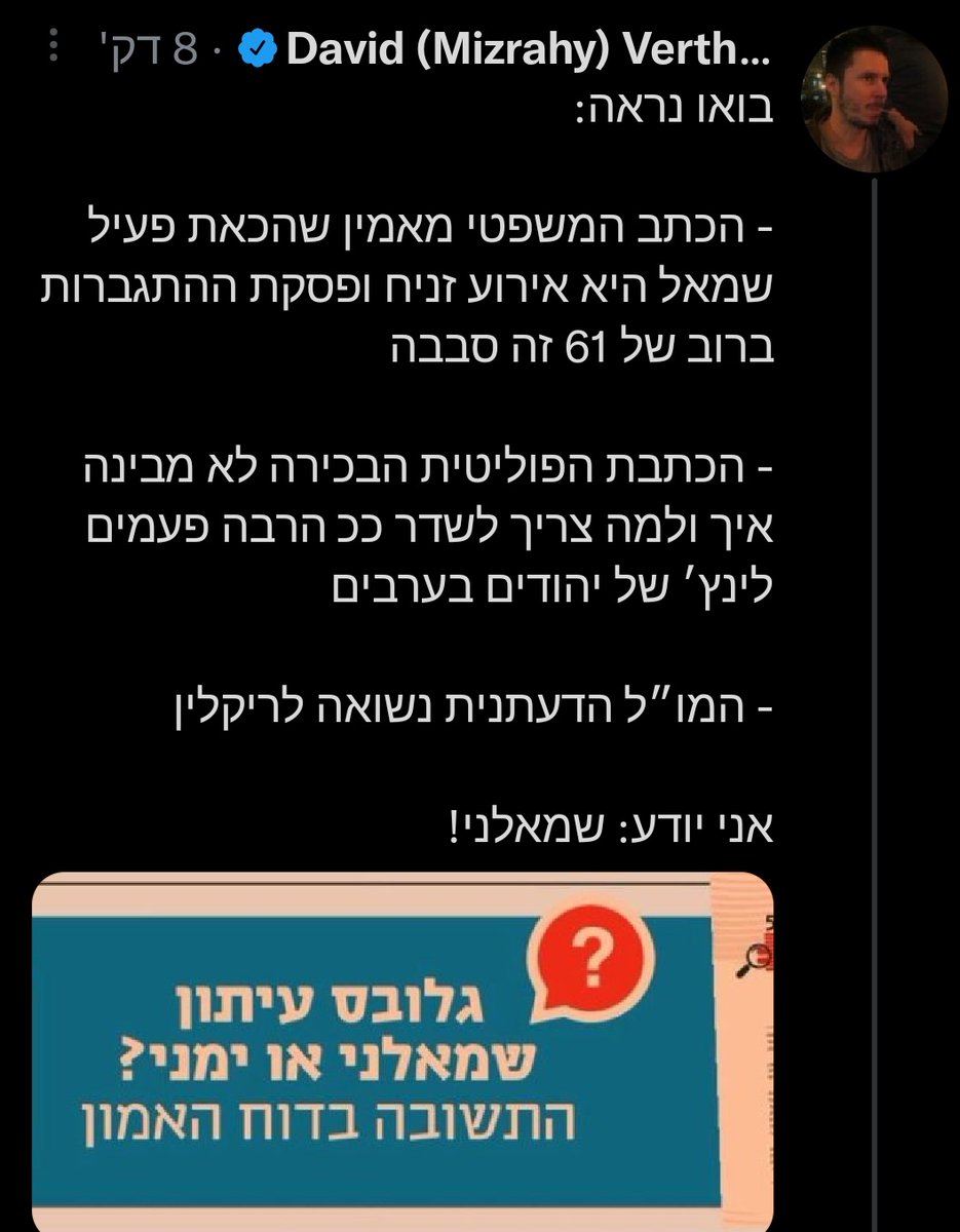 לגופו של עניין ב' - מתברר שיש בגלובס: 1. עיתונאים ימניים 2. עיתונאים.