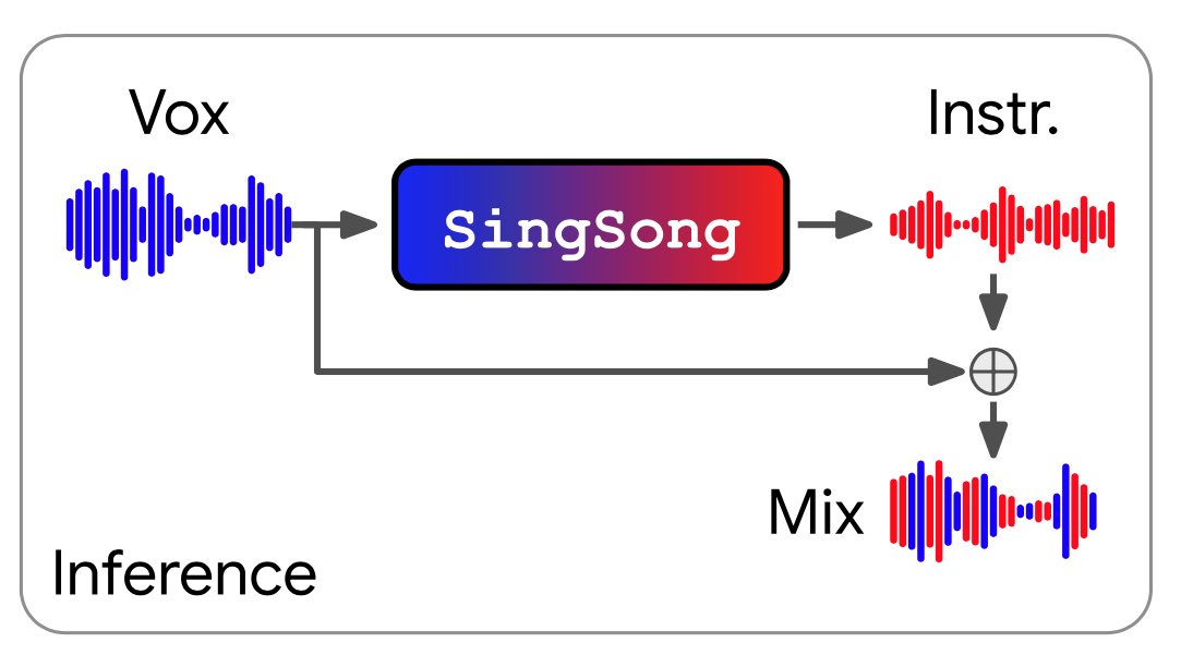 Inference time is even simpler: directly take input vocals from users and generate the conditional instrument accompaniment. Just naively mix with the input, and voila! It will sound coherent.