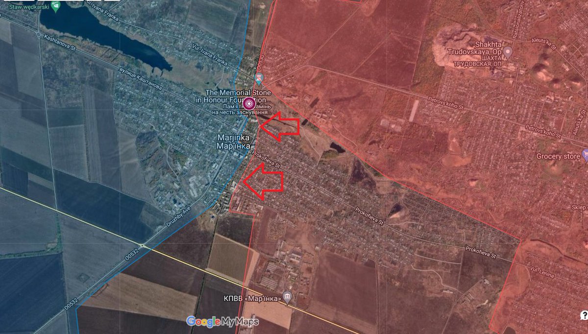 Marjinka - RUS zajęli spory fragment tzw. strefy szarej gdzie zostali zatrzymani przez siły UA. Postępy sił rosyjskich można policzyć w kilku, maksymalnie 100 metrach. 9/
