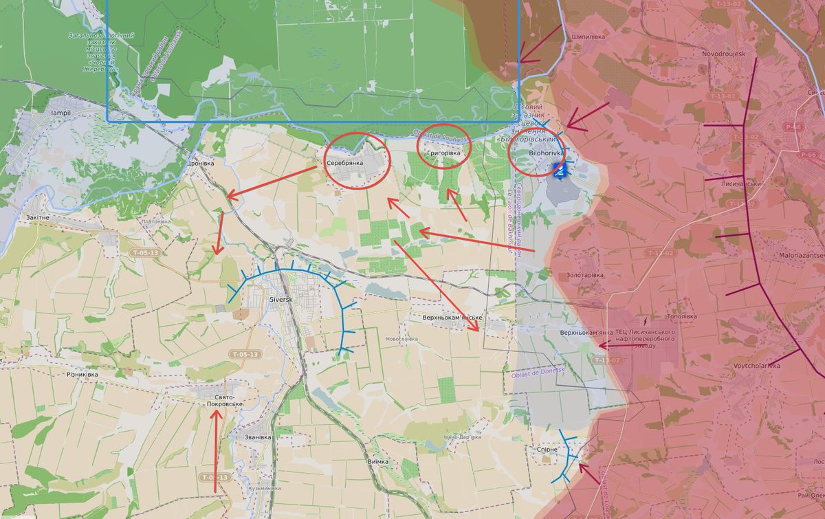 Serebrianka and/or Hryhorivka, thus cutting off and encircling troops at Bilohorivkal. It would be quite interesting that the town whose seizure sealed the Lysychansk-Severodonetsk cauldron (as I discussed many times previous to its occurrence ie