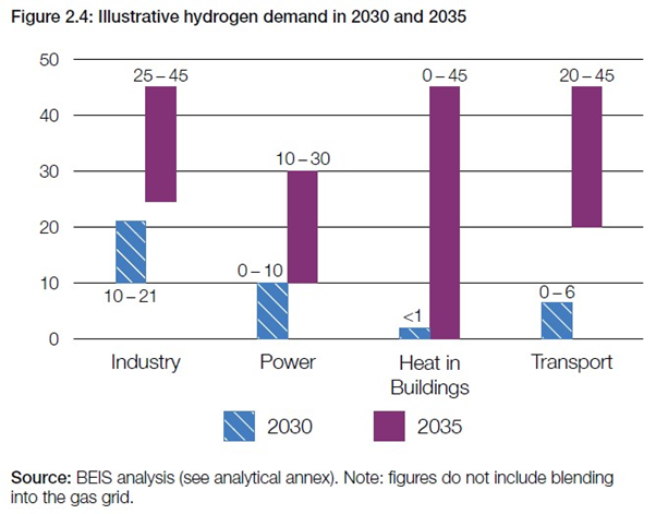 2/ UK government does not expect there to be large quantities of low carbon h2 to be available for home heating until the mid-2030s according to the Hydrogen Strategy. By 2035 up to 45 TWh of h2 for heating are expected in the strategy, about 10% of UK domestic heating demand.