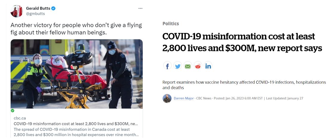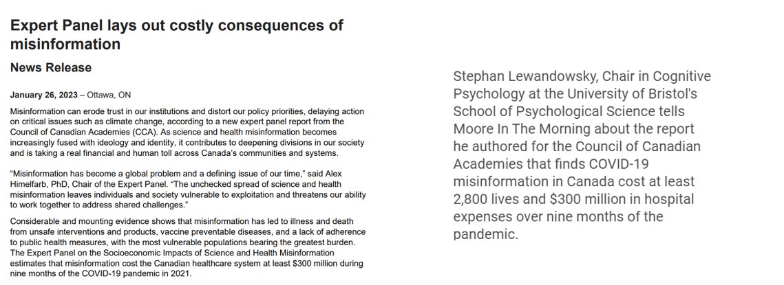 last week, in another avatar of Big Government ("Anti")disinfo, a Canadian NGO claimed that "COVID misinformation" cost at least 2800 lives and $300M. This was breathlessly and uncritically reported by Canadian news organizations cbc.ca/news/politics/…