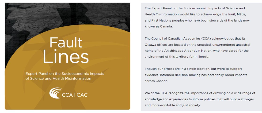 the report was published by an "expert panel" of the Council of Canadian Academies, who prefaced their remarks by asserting that their offices were on "unceded unsurrendered ancestral home of Anishinaabe Algonquin" who "cared for the environment for millenia"