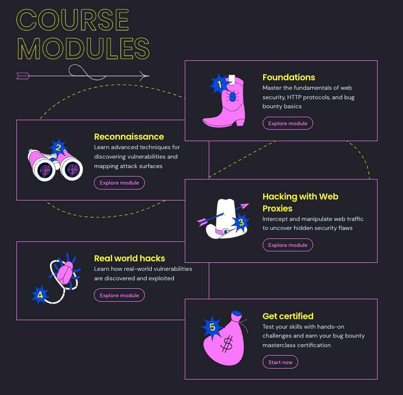 The course is split to 5 main chapters that could guide anyone from 0 to finding their first bug, 100% guaranteed! especially if you augment yourself with Agents like @claudeai Claude code :)