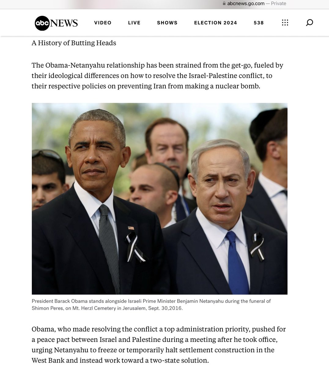 Obama stood up to Netanyahu on the issue of rapidly expanding illegal Israeli settlements that threatened a two state solution, but then that probably cost Hillary Clinton the White House when many right wing Jews in the US voted for Trump in 2016.