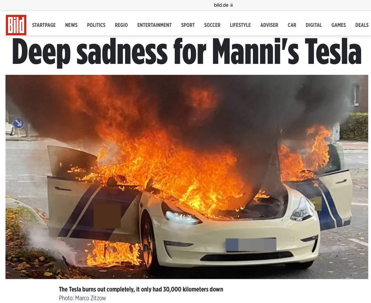 Tesla spontaneously caught fire in Germany. The victim this time was a veteran taxi driver. In 38 years of driving taxis, this is his first vehicle to burn down. While the cause remains “unknown” batteries usually catch 🔥 due to manufacturing defects or if they were compromised.