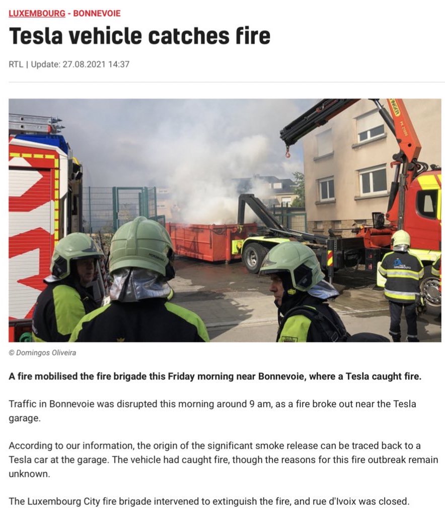 When a Tesla caught fire in Luxembourg, the fire brigade used a crane to dunk the vehicle in a water container. Taxpayers are subsidizing EV makers but lawmakers should tax EV makers so fire departments could be better equipped (masks, cranes, mobile fire pits…) to fight EV 🔥