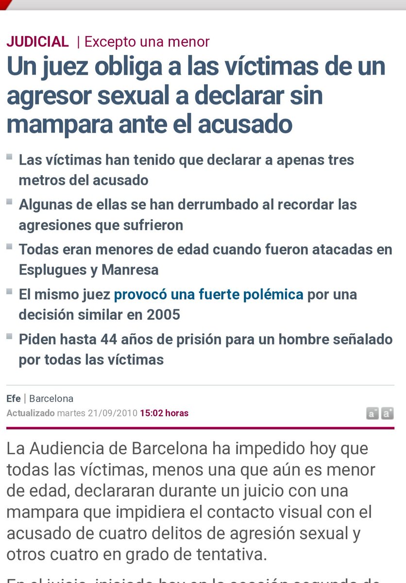 Ya son 58: La niña tenía 7 años, su hermano q fue testigo 9.El Supremo dice "en supuestos d abuso sexual sobre menores d corta edad, en particular cuando ha transcurrido un significativo de tiempo...bla,bla,bla. ¿Donde queda la ventanilla d denunciar con 7 años en tiempo y forma? Image