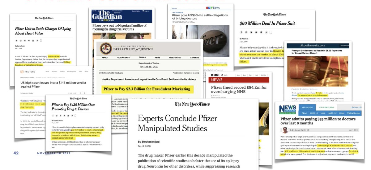 $10 BILLION IN FINES! The history of Pfizer's issues, legal infractions, fines and straight up corruption is long and lengthy. Here's a quick thread and history.