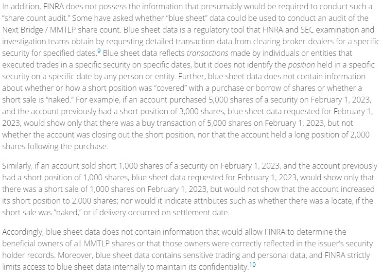 From the outset, FINRA attempts to disparage the grassroots retail community that evolved out of the MMTLP situation’s central issue and feigns a lack knowledge of what is meant by the term “counterfeit shares.” Rather they describe the situation using the more innocuous industry term “naked short selling” as if to imply the selling of US Securities without having a proper locate somehow legitimizes the actions of market participants and magically makes the practice legal and viewed as normal market mechanics. It doesn’t. 🤨