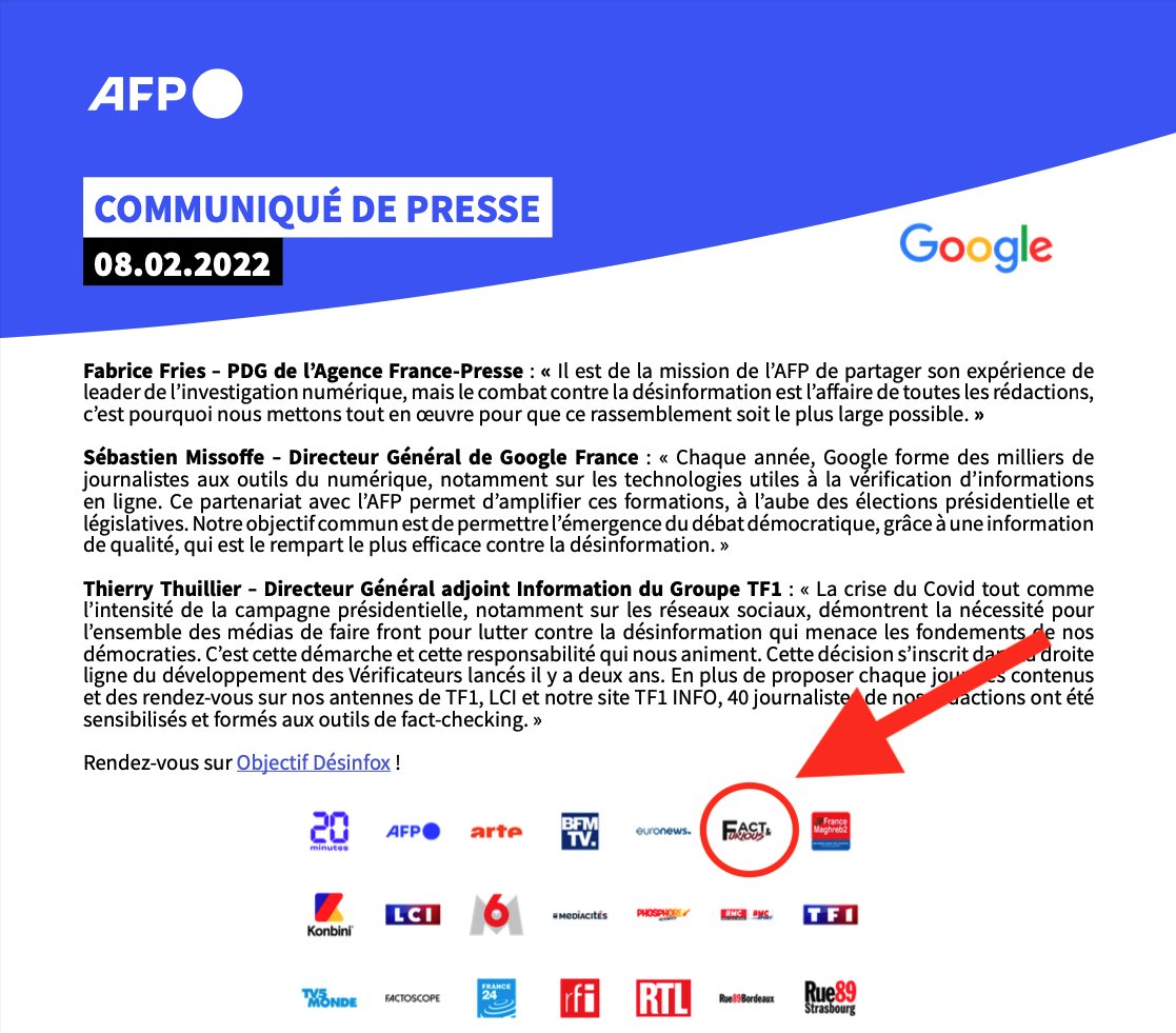 Qualification IPG par le ministère de la culture donnant à #FactAndFurious l'agrément de service de presse, propulsé partenaire de #Google #AFP et d'autres grands médias dans la lutte contre la désinformation