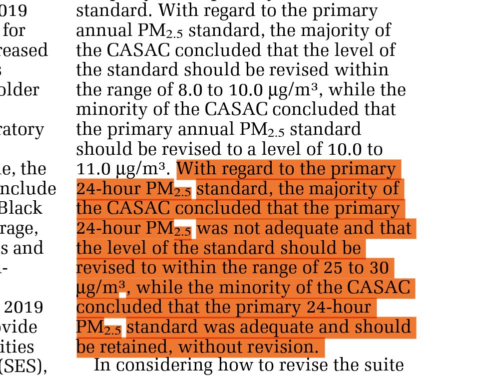 The EPA is proposing to IGNORE the CASAC's recommendation & keep the 35 ug/m3 std!