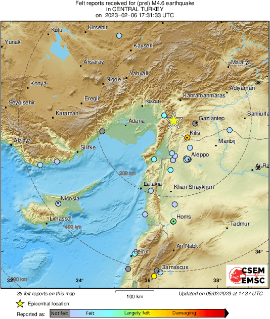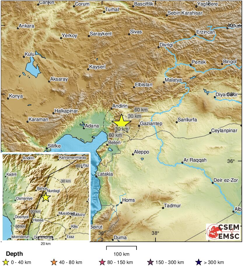 #Earthquake (#deprem) confirmed by seismic data.⚠Preliminary info: M5.0 || 5 km S of #Göksun (#Turkey) || 15 min ago (local time 23:43:59). Follow the thread for the updates👇