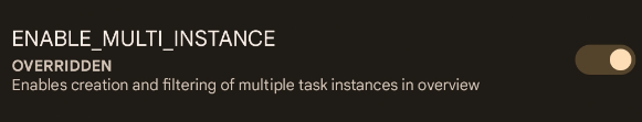 There's a new launcher flag called "ENABLE_MULTI_INSTANCE" that "enables creation and filtering of multiple task instances in overview." It's disabled by default...