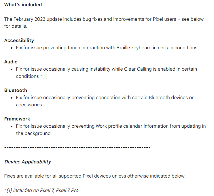 An update is rolling out now for Pixel phones bringing the 2023-02-05 security patch level. The build number is TQ1A.230205.*** and the update also addresses some Pixel-specific bugs.
