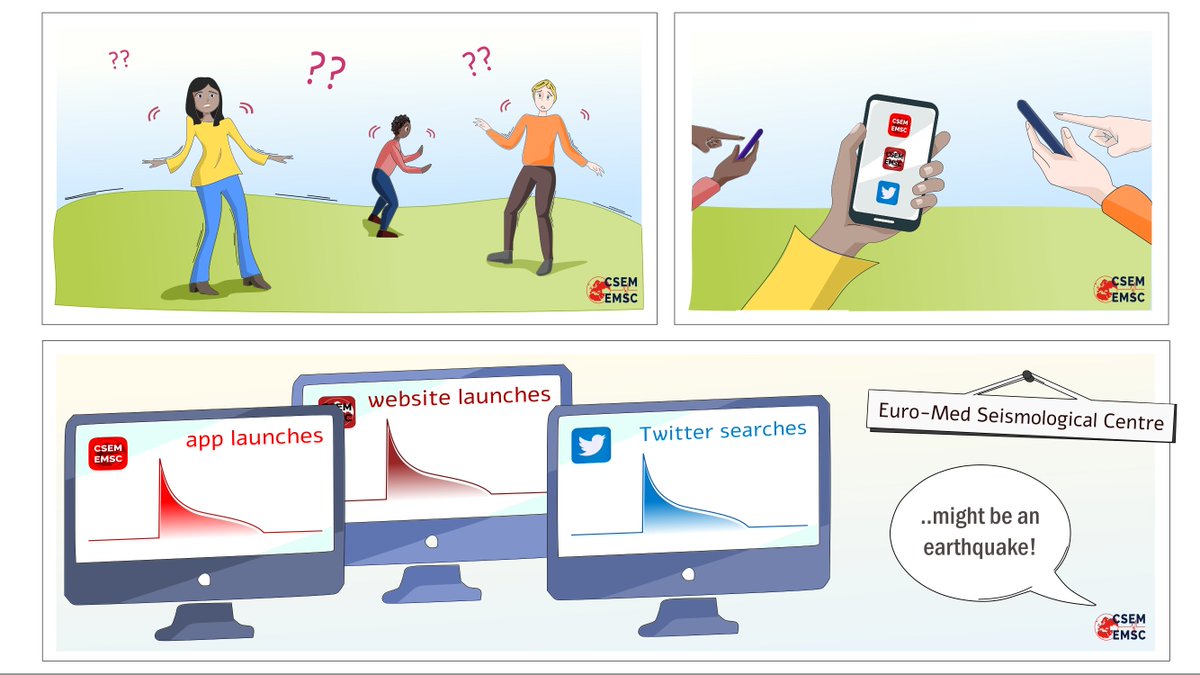 After sudden shaking, there is a rush of visitors using the LastQuake app & the EMSC websites, as well as tweets on Twitter, which alerts the EMSC that a seismic event has probably occurred.👇
