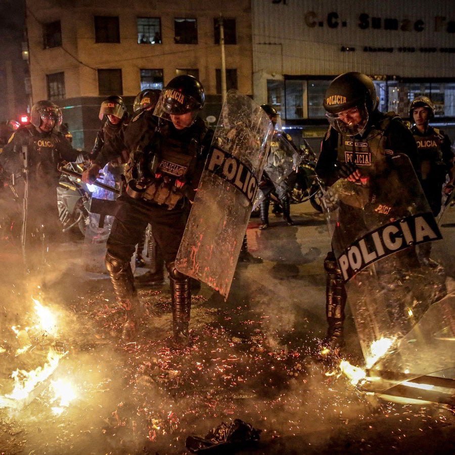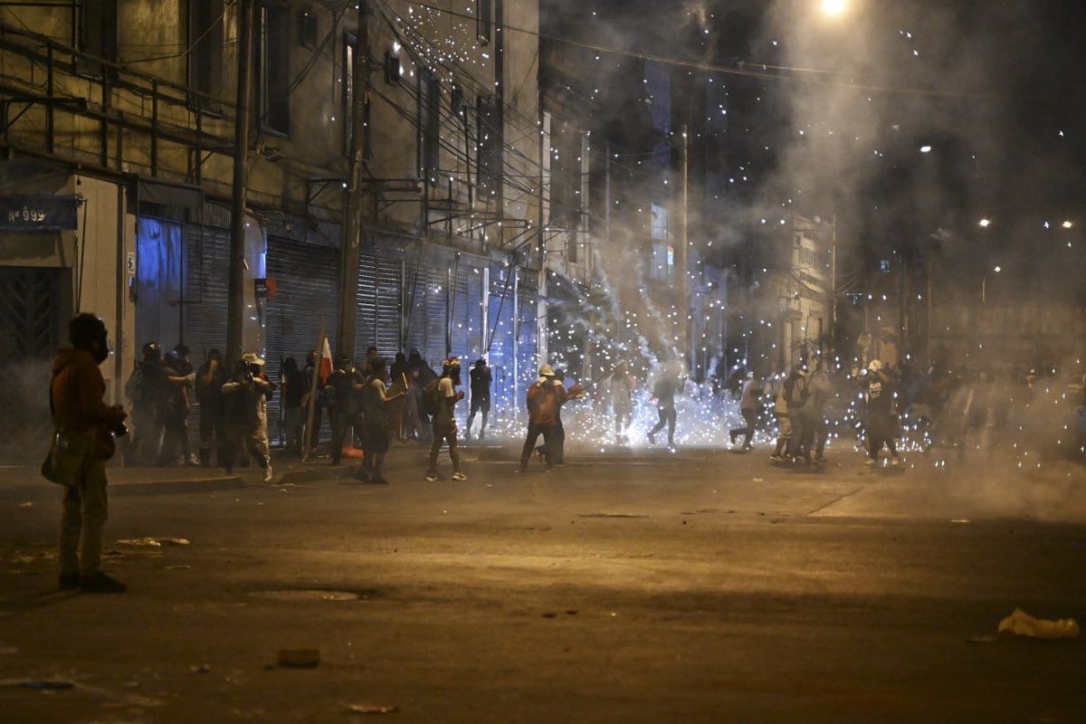 At nightfall, the police dispersed the demonstrators with tear gas as they advanced towards the Peruvian Congress building and the vicinity of the Palace. Protesters confronted security forces by throwing fireworks, and protected themselves with makeshift helmets and shields.