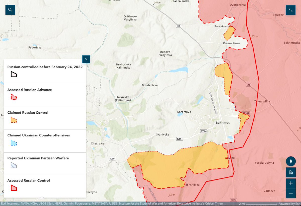 3/ Several Russian sources also claimed that Wagner Group forces reached the T0504 Kostyantynivka-Chasiv Yar-Bakhmut highway but did not offer a specific location. Russian milbloggers report that Ukrainian troops maintain control of Ivanivske, a critical settlement on the T0504.