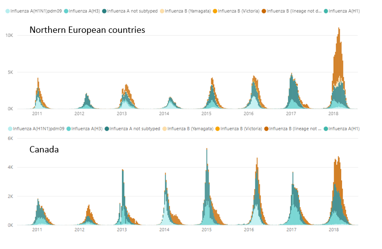 But cumulative charts can hide a lot of interesting information so I also plotted it as the actual number of deaths ocurring in each period.