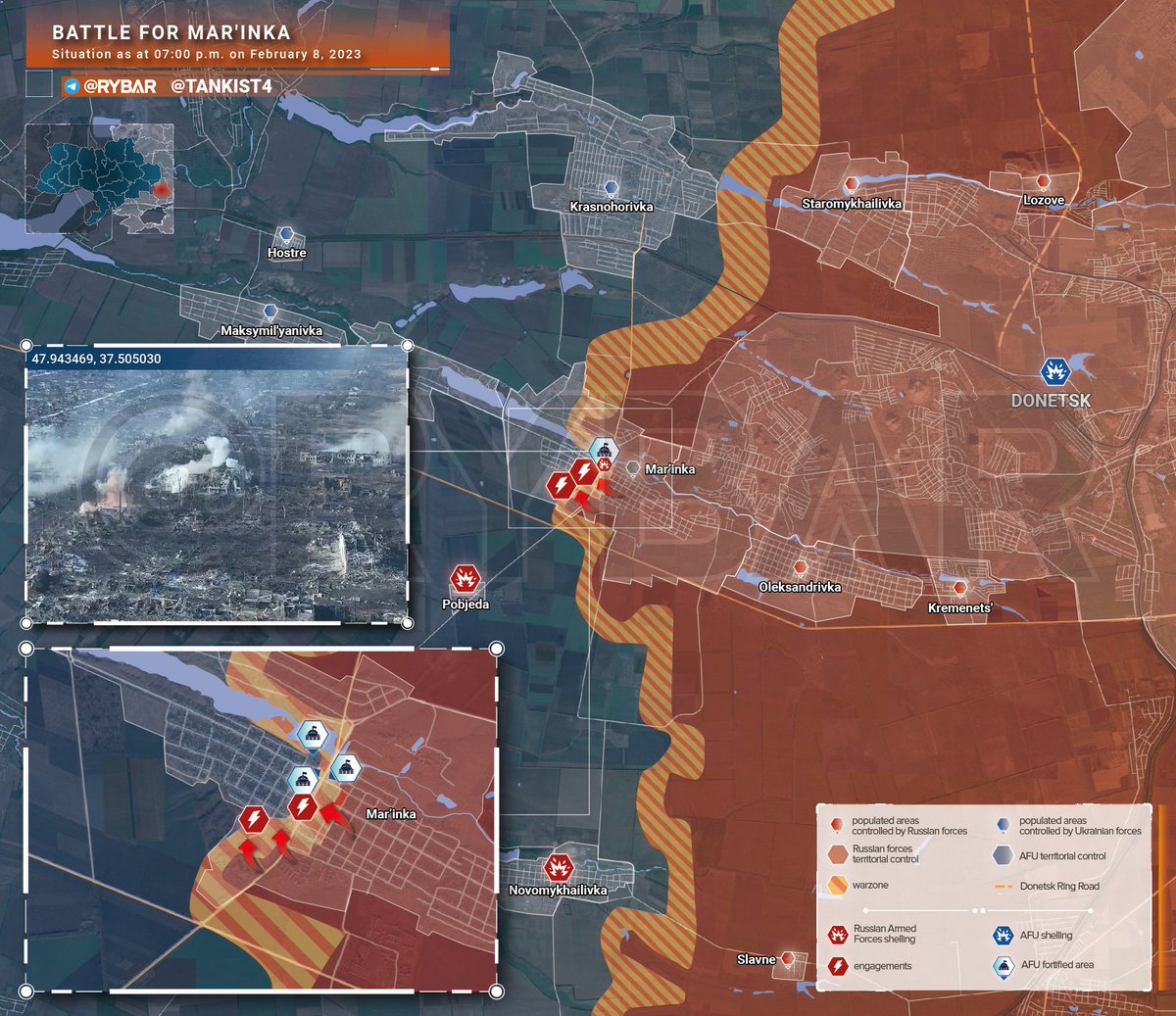 The most significant problem continues to be the AFU's intact supply lines. They continue to send reinforcements to western Marinka, keeping the fighting going for months. Russian units are having trouble identifying and targeting enemy units hiding in the ruins.