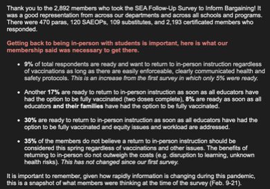 This is the same union which demanded that teachers get priority vaccination but then kept schools closed more than just about any other district in the nation. 74% of them said that even full vaccination wasn’t enough to return to in person learning.