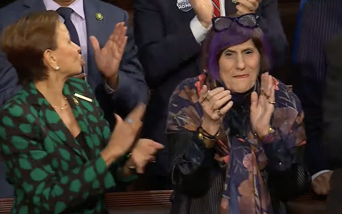 Rep. Rosa DeLauro, with her purple hair and funky glasses sitting on her head, continues to live her best life.