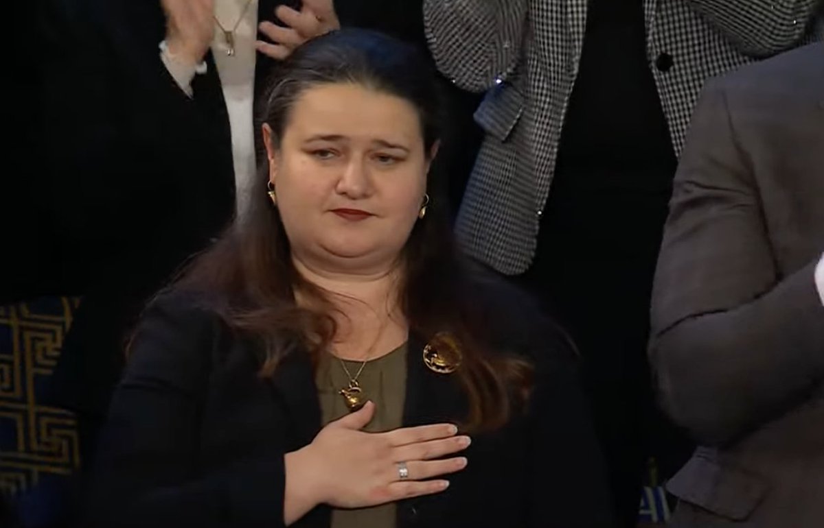Lots of cheers for that one... except there's Lauren Boebert, looking like she's not sure how she got there.