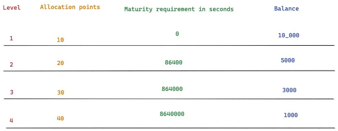With each increasing level, the allocation points that flow to a position increase.
