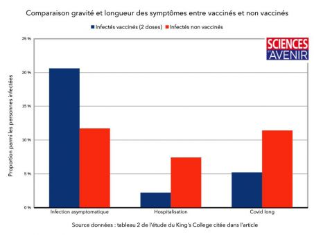 5/9 - D'après 2 études mesurant les symptômes individuels longs de la COVID, les cas complètement vaccinés étaient moins susceptibles de présenter les symptômes suivants à moyen ou long terme que les cas non vaccinés :