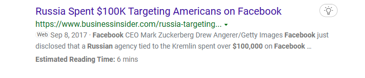 Actually, the most even alleged in 2016 election by Russia was $100,000. That's one white-collar salary.