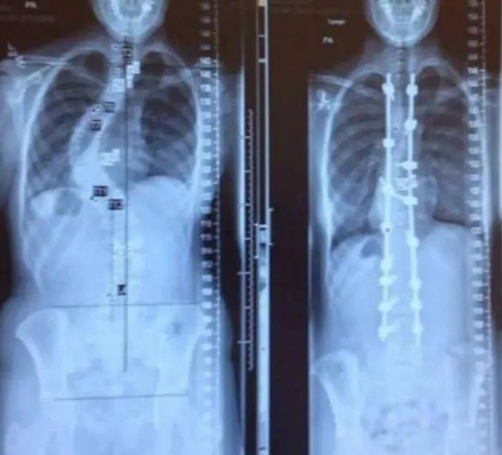 La Columna Vertebral de una persona antes y después de su operación de escoliosis.
