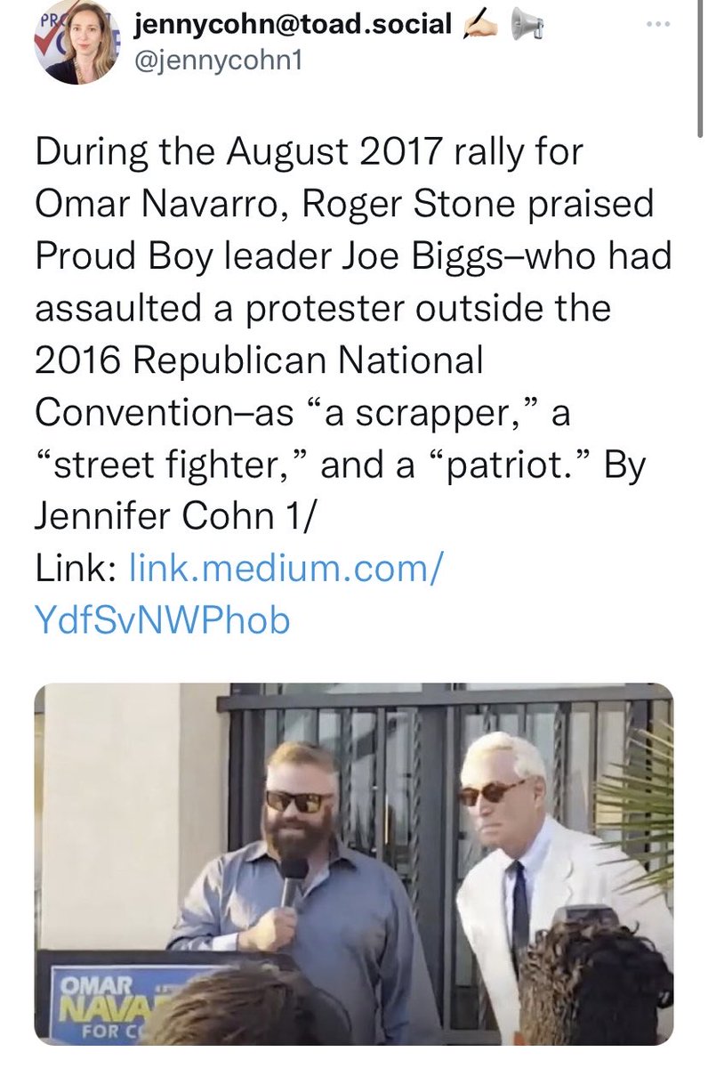 Tarrio (also of Florida) was close w/ Roger Stone as well. So two men w/ close ties to Stone were suddenly in charge of a violent gang of thugs w/ chapters across the country. What cld go wrong? 4/