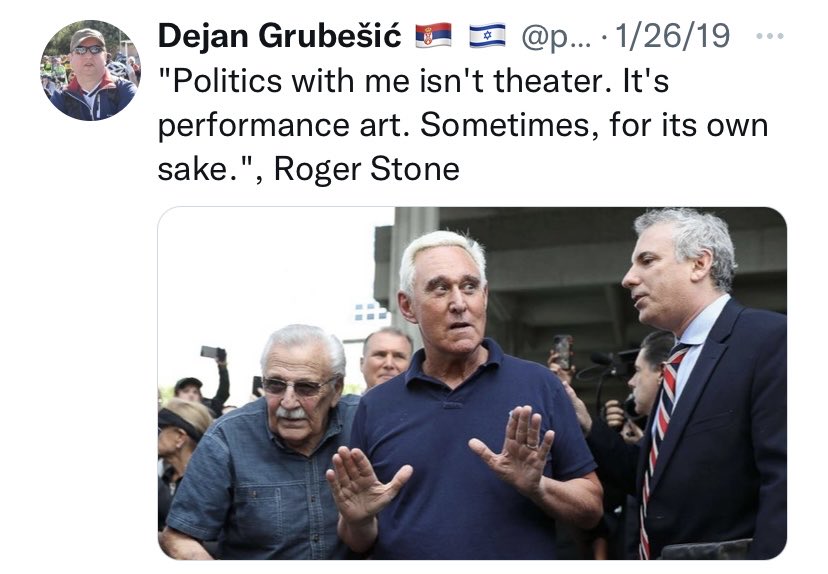 14/ Here’s a good Proud Boys photo to illustrate Roger Stone’s penchant for “performance art” with dangerous real life consequences. Politics as theater is his hallmark.