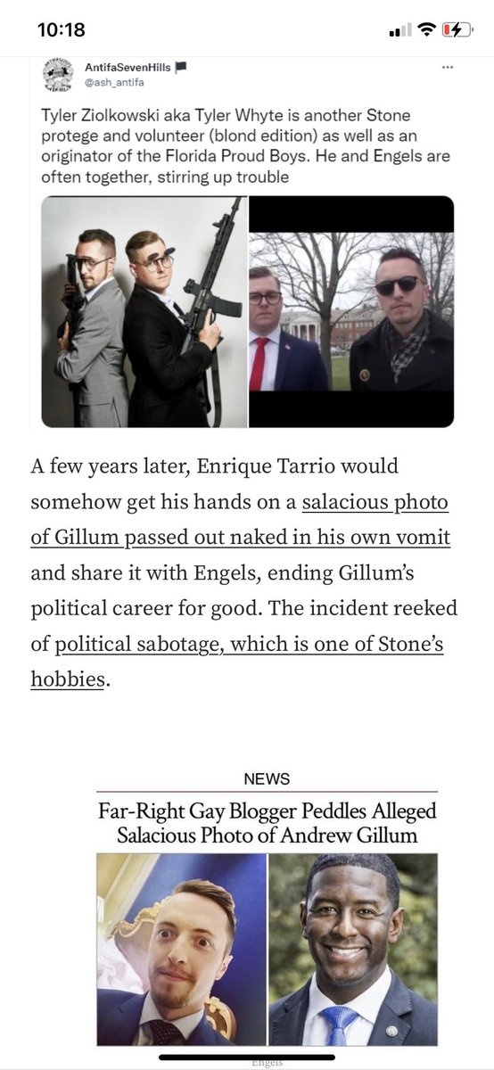 15/ Here again, Roger Stone assistant Jacob Engels w/ Proud Boy Taylor Whyte Ziolkowski. “Performance art.” Yes, there are less than burly Proud Boys. These are the Proud Boys who help w/ propaganda & smear campaigns.