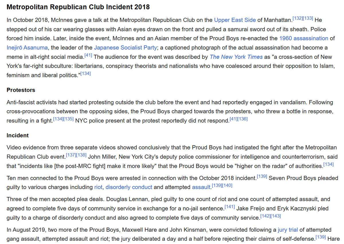 20/ Correction: the Proud Boys brawl in New York was in October 2018, not December 2018. Here's some info from Wikipedia about the incident.