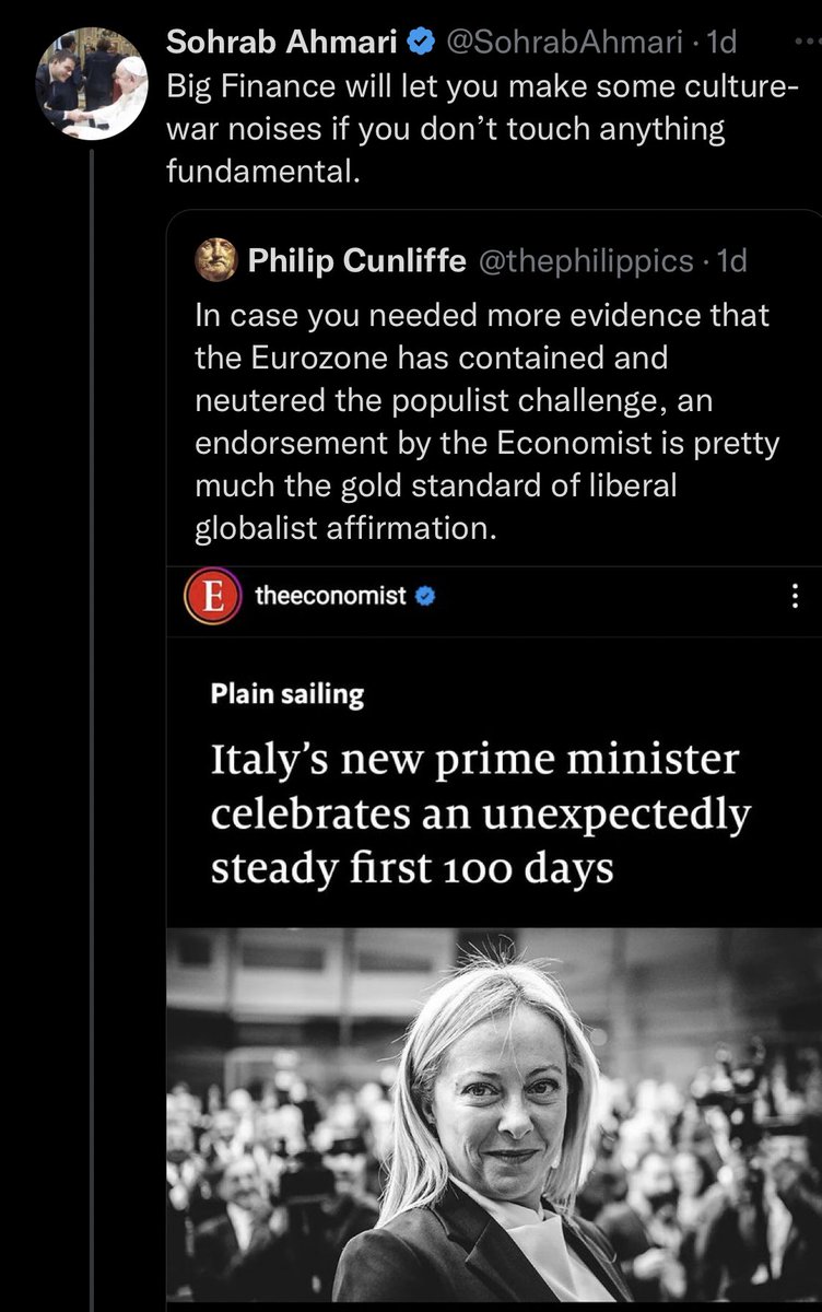 People see one positive headline from The Economist and think she’s gone wobbly, but Based Marxism™️ was never part of her platform.